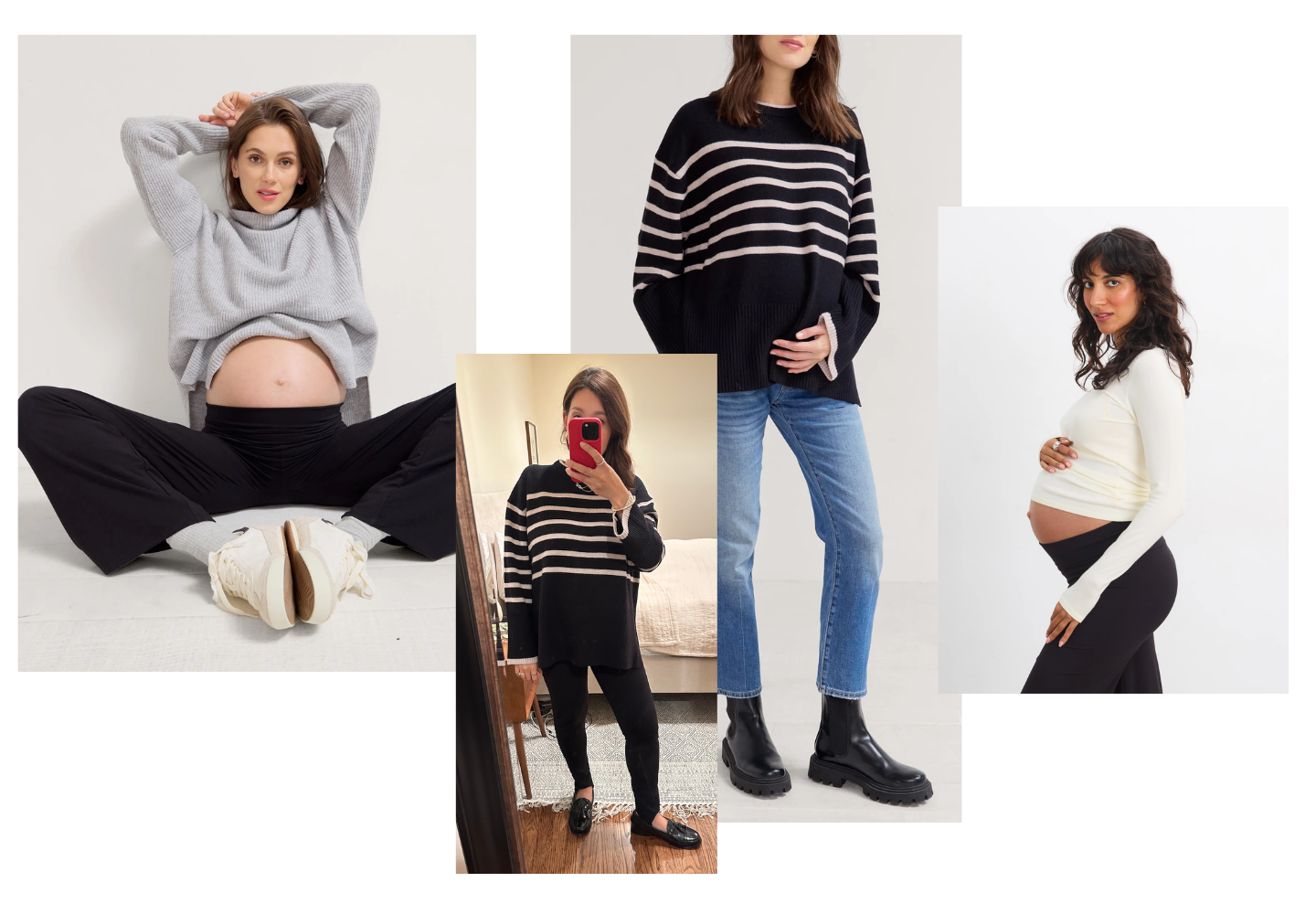 I had ten minutes to get dressed last night, so I reached for the comfiest combination I know: this HATCH maternity sweater (30% off sale right now), stirrup leggings, and my Weejuns loafers, which I can’t rec enough. I was comfortable all night, even after consuming lots of purple sweet potato pie (!) and chasing down a toddler.
