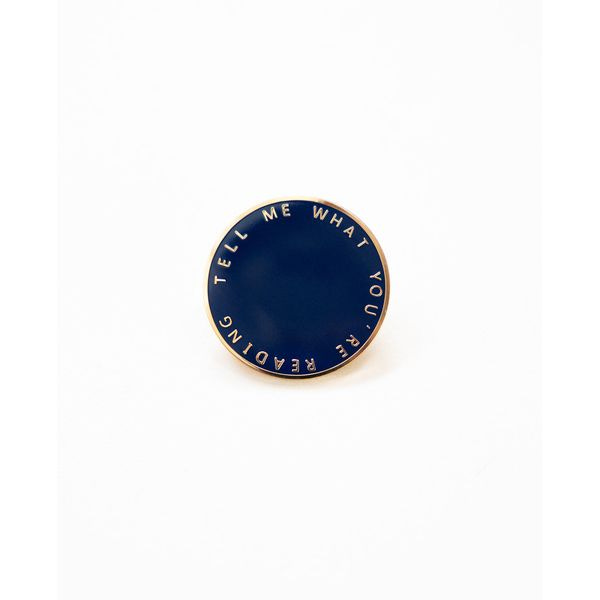 An enamel pin that says Tell Me What You’re Reading, $14. It does all the socializing so she doesn’t have to.